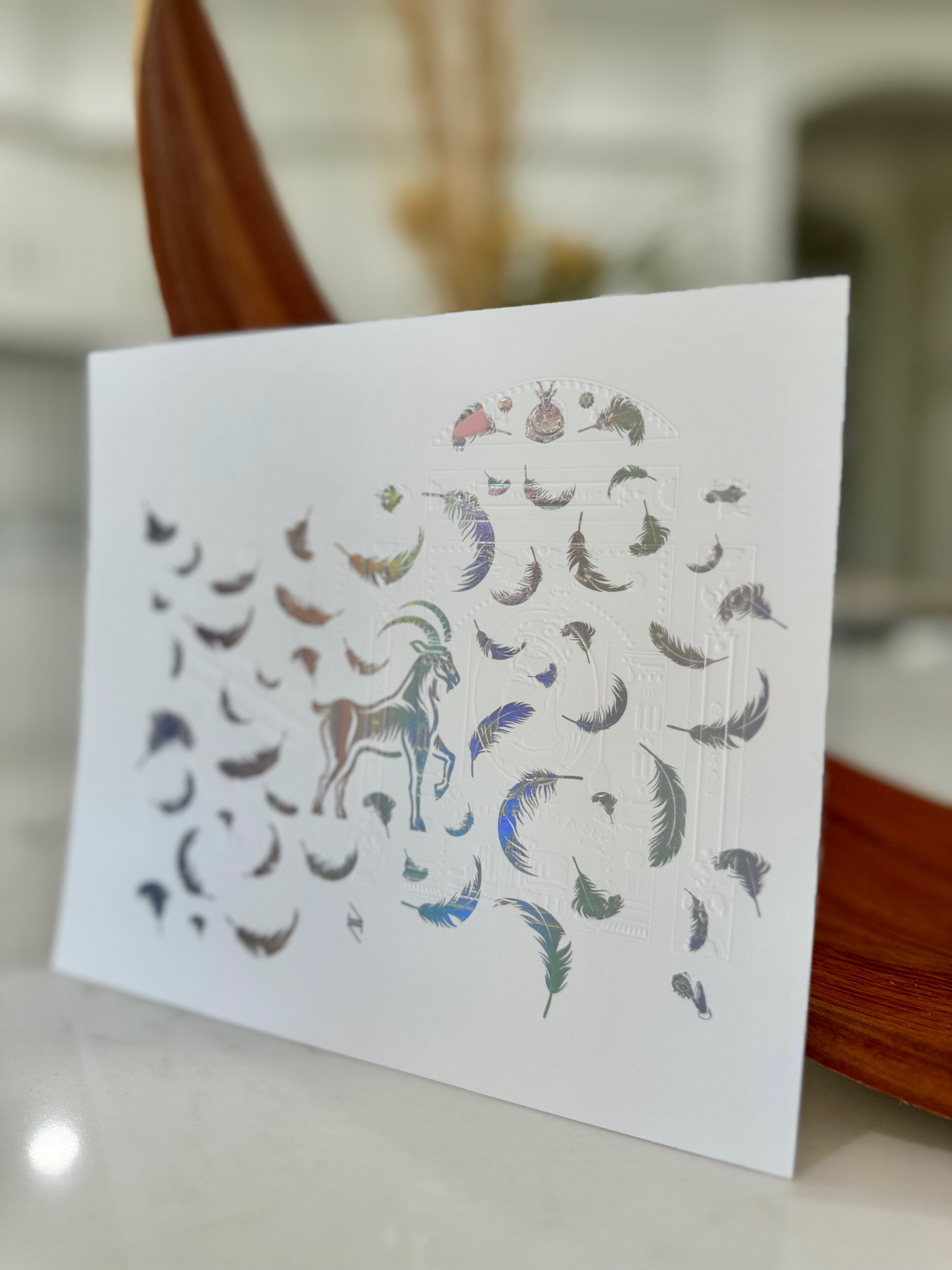 Introducing our signed, limited edition (only 15 of 25 available for sale), fully custom illustrated flat tuck box, a luxurious addition to any card player's collection. This tuck box features an exquisite design, wrapped in holographic foil on the exterior. Enhanced with embossing, the intricate details come to life with raised paper. The back side reveals a rich interior with holographic foil accents, adding an extra touch of elegance. Perfect for framing and displaying on your wall.